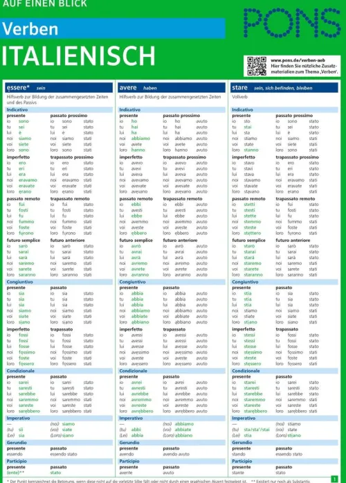 - Kompakt: Übersicht aller Verbformen, Konjugationen und Zeiten auf einen Blick zum schnellen Nachschlagen und Lernen.
