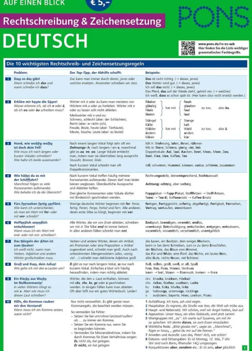- Die 10 wichtigsten Rechtschreib- und Zeichensetzungsregeln werden auf der Titelseite zusammengefasst – für die wichtigsten sprachlichen Zweifelsfälle und schlimmsten Fehlerquellen.