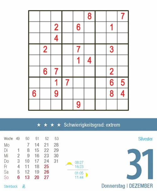 Dieser Kalender ist eine intellektuelle Herausforderung für anspruchsvolle Sudoku-Fans. Achtung: Suchtpotenzial inklusive!