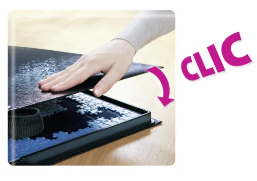Das praktische Kombiprodukt enthält außer dem Puzzle alles, was Sie zum Puzzeln benötigen: Zum Sortieren der Teile nutzen Sie einfach die Innenseite der Mappe aus stabilem Kunststoff, die in unterschiedlich große Segmente aufgeteilt ist. Gelegt wird das Puzzle auf der Puzzle-Unterlage aus stabiler Pappe, die Sie auch einzeln transportieren können. Als Legehilfe finden Sie die Umrisse von Ravensburger Puzzles mit 500 Teilen und 1000 Teilen darauf vorgedruckt. Zum komfortablen Aufbewahren und Transportieren Ihres Puzzles legen Sie die Puzzle-Unterlage einfach auf die Sortiervorrichtung und schließen den Deckel fest. So bleiben die losen Teile in ihren Fächern und auch das angefangene Puzzle bleibt an Ort und Stelle – Selbst wenn Sie die Puzzlemappe am Henkel tragen. Durch die geringe Dicke von nur etwa drei Zentimetern findet sich in jedem Haushalt ein Plätzchen für diese Puzzle-Mappe, sei es unter dem Sofa, auf dem Schrank oder sogar im Schrank stehend. Dabei ist das edle Design so schön, dass es fast zu schade ist sie zu verstecken. Mit der Ravensburger Puzzle-Mappe erhalten Sie ein gut durchdachtes Zubehör für viele schöne Puzzle-Stunden, das auch optisch Freude macht.