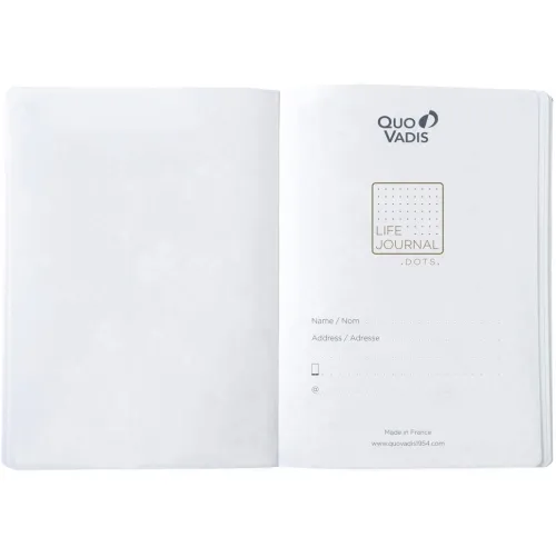 Life Journal 21 DOT, Ganz im Stil des Bullet Journal®, der Kalender zur persönlichen Gestalltung ? Die Dot Lineatur ermöglicht die komplette Freiheit und Flexibilität, um seinen Kalender zu krieren ? Notizbuch mit 100% Dot-Lineatur 5×5- 4-farbig, festem Umschalg und abgerundeten Ecken ? 224 Seiten weißes sehr hochwertiges Clairefontaine Papier 90g/qm ? Papgnierung mit goldenem Aufdruck ? Markierungsband mit Metallic Effekt auf Vorder- und Rückseite ? 1 goldenes Lesezeichen ? 1 weiße Einstecktasche ? Mit Gummizugverschluss ? Papier ist säurefrei, blickdicht und wiederstandsfähig