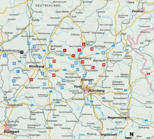 Dieser Fahrradführer zeigt Ihnen die schönsten Fahrradstrecken zwischen Aschaffenburg und Bayreuth – mit Tipps zu fränkischer und internationaler Gastronomie.