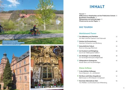 Main-Donau-Kanal, Mainschleife, Mainbogen, Rotmainquelle – der Main ist allgegenwärtig auf den paradiesischen Radlstrecken in Mainfranken und der Fränkischen Schweiz. Und auch Nebenflüsse wie Tauber, Fränkische Saale und Regnitz sind von fantastischen Radwegen gesäumt. Doch in diesem Radführer geht es nicht nur flach am Wasser dahin, auch Freunde einiger Höhenmeter kommen auf ihre Kosten: in Bergregionen wie Odenwald, Spessart und Steigerwald.