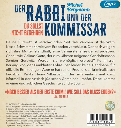 Galina Gurewitz ist verschwunden. Seit drei Wochen ist die Weltklasse-Schwimmerin wie vom Erdboden verschluckt. Dennoch weigert sich ihre Mutter standhaft, eine Vermisstenanzeige aufzugeben. Genau wie Galinas Gatte, der zum Jähzorn neigende Geschäftsmann Semjon Gurewitz. Werden sie womöglich erpresst? Kommissar Berking von der Frankfurter Polizei hat leider keine Handhabe für offizielle Ermittlungen. Aber er hat seinen Freund, den kriminalistisch begabten Rabbi Henry Silberbaum. Und der hört sich einfach mal ganz informell in der russisch-jüdischen Gemeinde um. Dabei kommt er einer unglaublichen Geschichte auf die Spur . . .