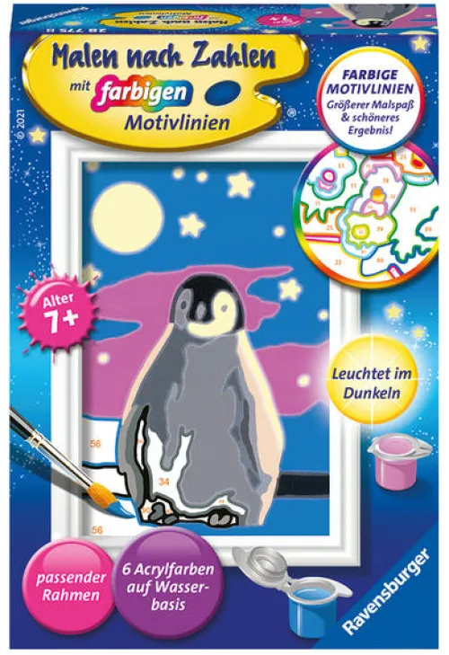 Dank der farbigen Motivlinien, können die Kinder das ganze Motiv Kleiner Pinguin und die Farben schneller erkennen.