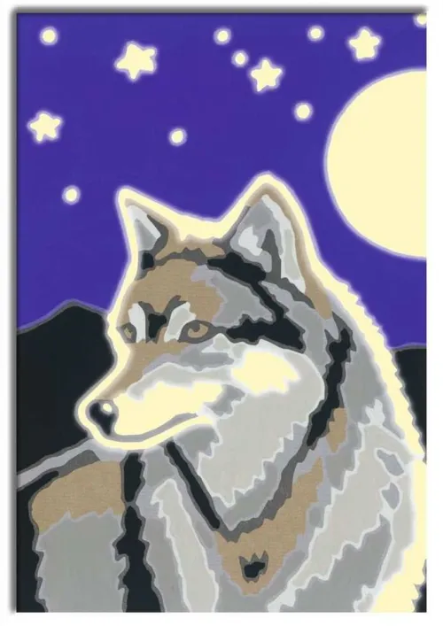 Dank der farbigen Motivlinien, können die Kinder das ganze Motiv Wolfsportrait und die Farben schneller erkennen.