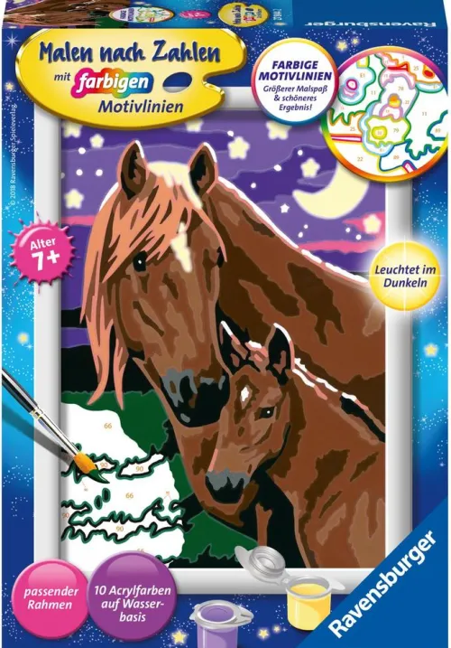 Dank der farbigen Motivlinien, können die Kinder das ganze Motiv Pferde und die Farben schneller erkennen.
