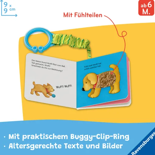 Die Mini-Fühlbücher sind perfekt für unterwegs! Die kleinen Mitmachbücher passen in jede Handtasche und nehmen auch im Wickelrucksack wenig Platz ein. Durch die Buggy-Aufhängung lassen sie sich prima am Kinderwagen, Hochstuhl oder Kindersitz befestigen. Sie sind deshalb eine super Beschäftigung für die Autofahrt, Wartezeiten oder einfach zwischendurch.