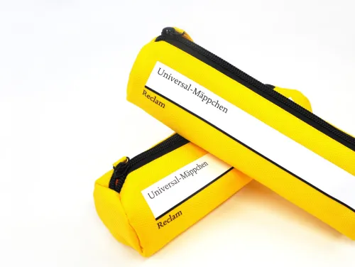 Das perfekte Accessoire für alle Literatur-Fans und Vielleser: Das Universal-Mäppchen ist optisch an die bekannte Reclam Universal-Bibliothek angelehnt – ein gelber Hingucker!