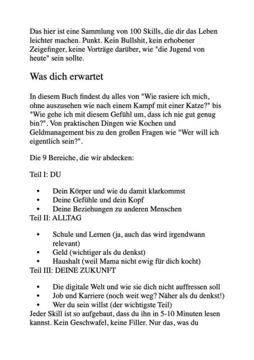 Stattdessen: 100 konkrete Life Skills, die deinem Sohn helfen, Schritt für Schritt Verantwortung für sich selbst zu übernehmen.