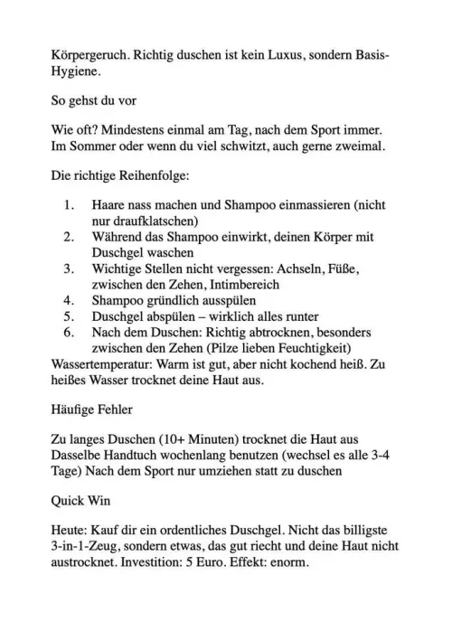 Verantwortung für seinen Körper, seine Gesundheit und seine Hygiene zu übernehmen