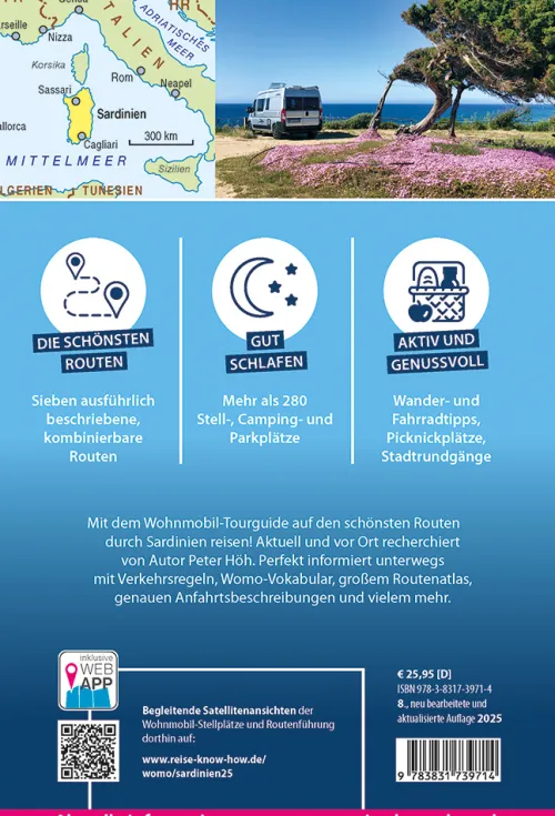 Dieser Wohnmobil-Tourguide ist der ideale Begleiter, um die schönsten Regionen Sardinien zu erkunden. Sieben detaillierte Routenbeschreibungen – über 280 Camping- und Stellplatzbeschreibungen, Park- und Picknickplätze inkl. GPS-Daten und Anfahrt – 29 Seiten Routenatlas – landschaftliche Höhepunkte, sehenswerte Städte, charmante Dörfer und kilometerlange Strände – wertvolle Tipps für Restaurantbesuche und den Kauf lokaler Produkte.