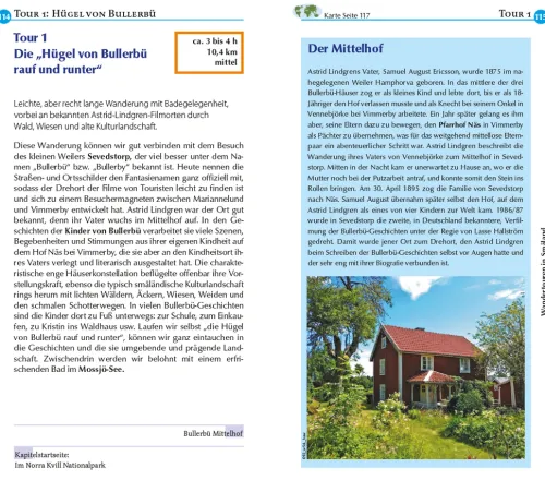 Småland: Das sind klare Seen, dichte Wälder und rote Holzhäuser. Diese Idylle, bekannt aus zahlreichen Astrid-Lindgren-Erzählungen und -verfilmungen, lockt jedes Jahr zahlreiche Besucher in die Heimat der Autorin rund um Vimmerby. An vielen Plätzen kann man hier in Verbindung treten mit den Geschichten und der Biographie der großen Kinderbuchautorin. Man muss sie nur finden: Die meisten wollen wandernd in der Natur aufgespürt werden, denn viele Geschichten Astrid Lindgrens sind eingebettet in die Besonderheit der småländischen Natur- und Kulturlandschaft. In diesem Wanderführer sind 21 Rundwanderungen beschrieben, die zu den schönsten und wichtigsten Plätzen führen und die für Familien besonders gut geeignet sind. Zahlreiche Hintergrundinformationen öffnen die Augen auch für die etwas verborgeneren Schönheiten und Eigenheiten des Landes und der Leute, der Kultur und der Geschichte. Mit vielen praktischen Tipps hilft der Wanderführer, passende Wege und Ziele zu finden. Er ermöglicht besondere Wander- und Naturerlebnisse, gibt interessante Exkurse zu Flora und Fauna, empfiehlt landestypische Rezepte und hilft dem Leser so, die Heimat Astrid Lindgrens umfassend zu erschließen. – thematischer Wanderführer auf den Spuren der populärsten Kinderbuchautorin der Welt- von Katthult und Büllerbü bis nach Mariannelund und Lönneberga- familienfreundlich und mit Bezügen zu beliebten Kinderbüchern- viele interessante Hintergründe zur Kulturgeschichte