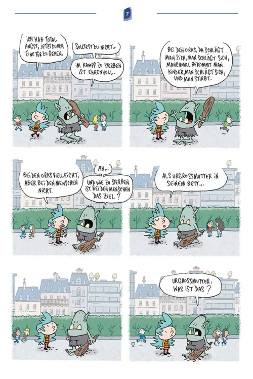 Der unermüdliche Lewis Trondheim legt mit AURORA UND DER ORK eine neue Serie vor, in der er fantastische Elemente in den Schulalltag trägt und sich gleichermaßen an ein Lesepublikum von Kindern als auch an Erwachsene richtet. In AURORA UND DER ORK geschehen gruselige Dinge, aber nur in der Vorstellung des Leser:innen und immer außerhalb dessen, was in den Bildern gezeigt wird. Ein schrecklicher Lesespaß!