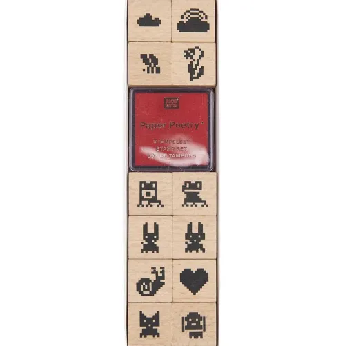Rico Design GmbH & Co.KG Stempel & -Kissen-Stempelset Futschikato, Pixel, FSC 100%, 12 Stempel, 1 Stempelkissen