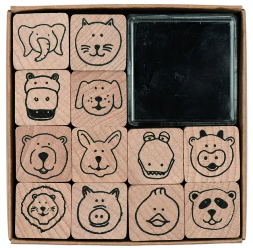 12 Holzstempel, 1 Stempelkissen schwarz