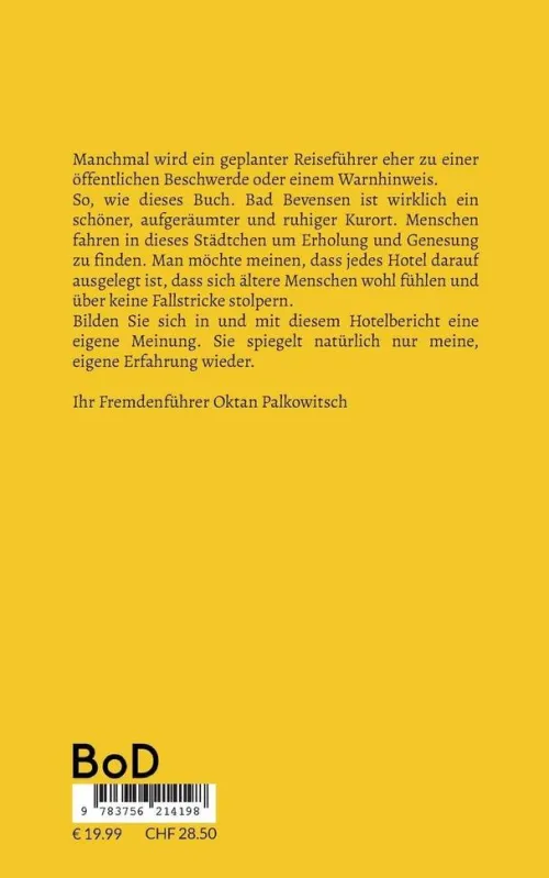So, wie dieses Buch. Bad Bevensen ist wirklich ein schöner, aufgeräumter und ruhiger Kurort. Menschen fahren in dieses Städtchen um Erholung und Genesung zu finden. Man möchte meinen, dass jedes Hotel darauf ausgelegt ist, dass sich ältere Menschen wohl fühlen und über keine Fallstricke stolpern.
