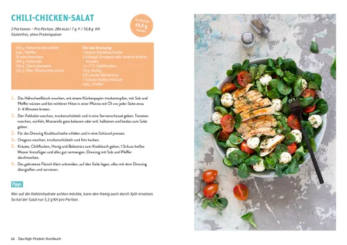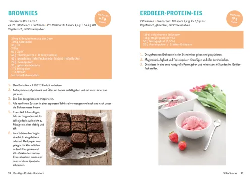 Eine optimale Eiweißversorgung ist wichtig für Sportler und für alle, die abnehmen wollen. Sie unterstützt dich dabei, Muskelmasse aufzubauen, Körperfett zu reduzieren und lange satt zu bleiben. Damit du den ganzen Tag über optimal mit genügend Protein versorgt bist, bietet dir dieses Buch mehr als 60 eiweißreiche Rezeptideen, zum Beispiel Wraps mit Hähnchen-Salat-Füllung, Protein-Piccolinis, einen nährstoffreichen Quarkauflauf, gesunde Brownies und auch eine Vielzahl leckerer Eiweiß-Shakes. Die High-Protein-Mahlzeiten sind schnell zubereitet, weshalb du sie auch ganz einfach in deinen Alltag integrieren kannst.