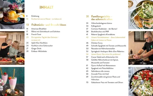 Carmens berühmter Nudelsalat, Roberts Spaghetti all arrabbiata oder Paella Valenciana nach Familienrezept all die Lieblingsgerichte der berühmten Millionärsfamilie können Fans jetzt endlich zu Hause nachkochen. Ihre Leibspeisen aus der deutschen Heimat kombinieren die Geissens mit frischer, mediterraner Küche und Highlights von ihren Reisen. Gerichte wie Caesar Salad, Kaiserschmarrn oder Roberts Kölsche Currywurst schmecken garantiert der ganzen Familie. Für Gäste wird auch mal der Steak-Salat »El Gaucho« mit Maniok-Fritten oder Carmens superzartes Lamm serviert. Bei den 60 Lieblingsrezepten der Geissens ist für jeden etwas dabei!