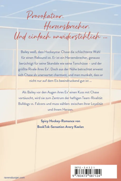 Bailey weiß, dass Hockeystar Chase die schlechteste Wahl für einen Rebound ist. Er ist ein Herzensbrecher, genauso berüchtigt für seine Skandale wie seine Torschüsse – und der größte Rivale ihres Ex‘. Doch Chase erweist sich als unerwartet charmant, und man munkelt, dass er nicht nur auf dem Eis beeindruckend gut ist . . . Als Bailey einen Kuss mit Chase vortäuscht, wird sie zum Zentrum der heftigen Team-Rivalität Bulldogs vs. Falcons und muss wählen: zwischen ihrer Loyalität und ihrem Herzen.