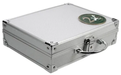 – Patentbügel zum Entnehmen der Tableaus. Mit 6 königsblauen Samt-Einsätzen