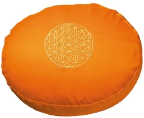 Saraswati Achtsamkeit & Gesundheit-Meditationskissen mit Dinkelfüllung und Stickerei Blume des Lebens, orange