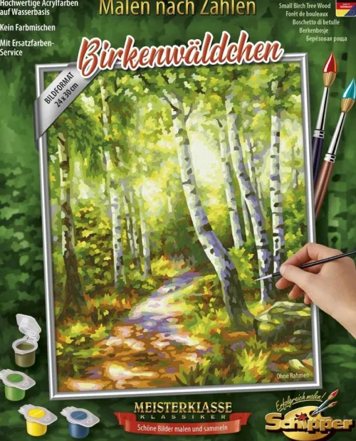 Die neue Serie Meisterklasse Klassiker erinnert mit lieblichen Landschaftsmotiven und Blumenbildern an die Anfangszeit von Malen nach Zahlen“ in den 1960er Jahren. Unter dem Thema Schöne Bilder Malen und Sammeln präsentiert Schipper Retromotive im damals üblichen Format 24 x 30 cm, die viel Freude beim Ausmalen bringen. Motive wie Die Villa am Meer , Die alte Mühle und Birkenwäldchen können für eine kleine Bildergalerie schön gruppiert und dekorativ aufgehängt werden.