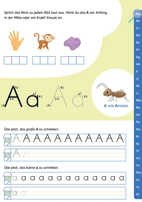 Mithilfe vorgeprägter Linien wird das Schreibenlernen zum Kinderspiel! Durch die Vertiefungen im Papier bleiben Kinder von Anfang an in der Spur und trainieren so schon früh ein sauberes Schriftbild. Zusätzlich unterstützen abwechslungsreiche Übungen sie beim Einprägen der Buchstaben von A bis Z. So einfach ist Schreibenlernen!