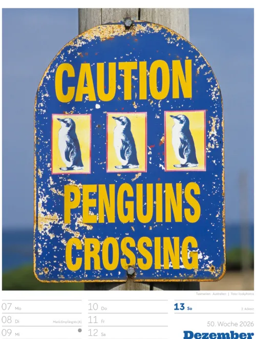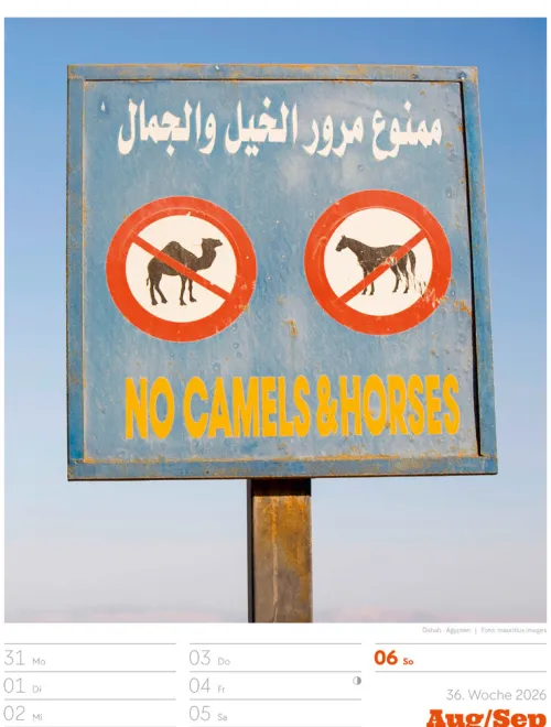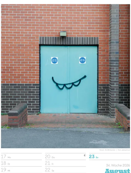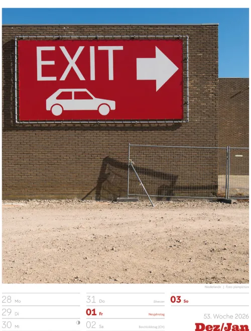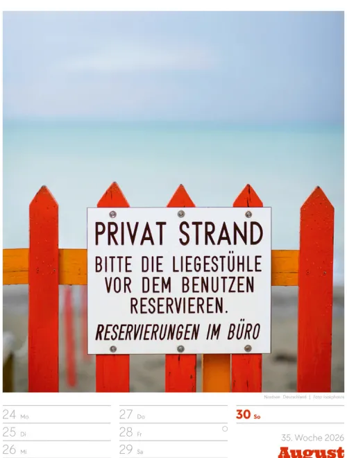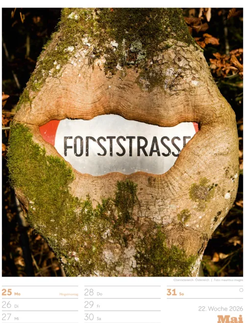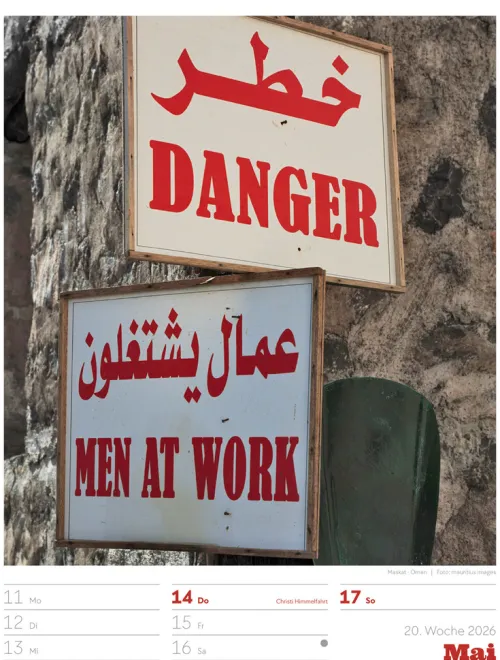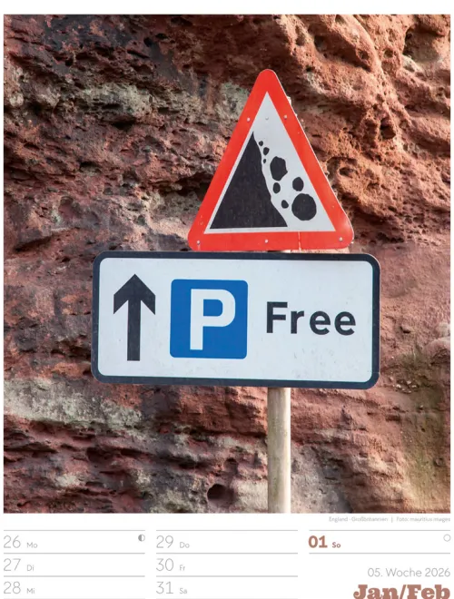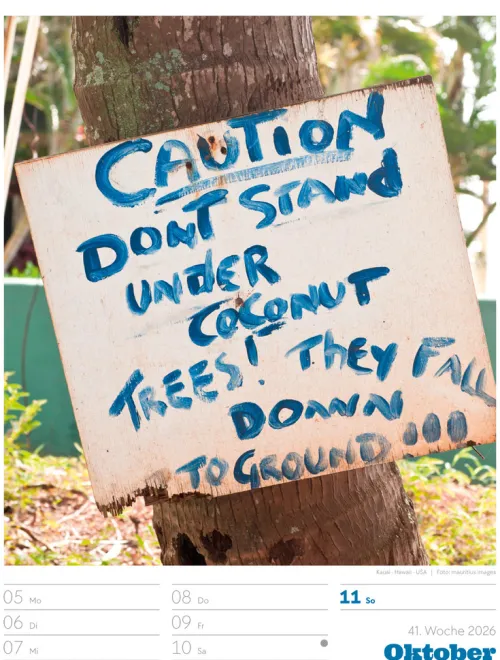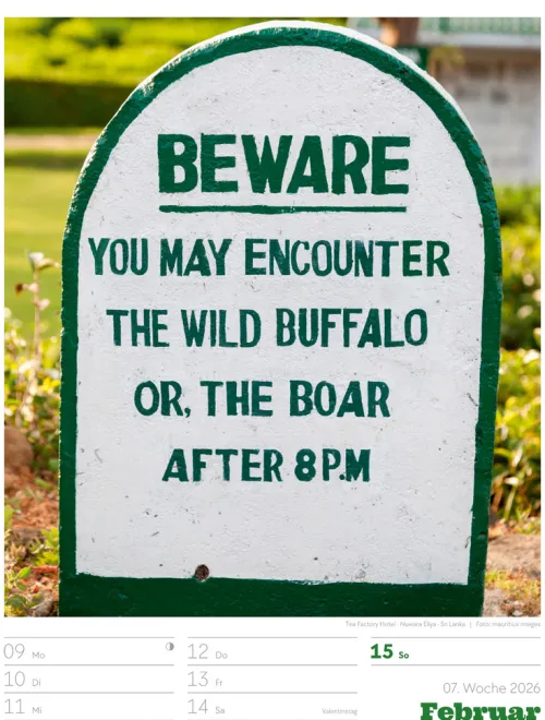 - Wochenkalender mit 53 augenzwinkernden Bildern von Schildern, gespickt mit subtilem Humor und lakonischer Ironie