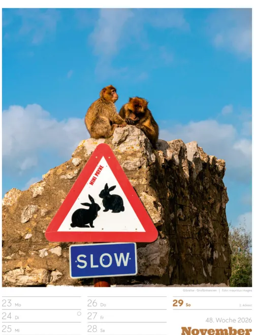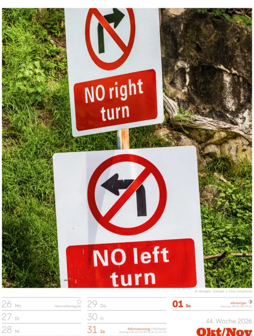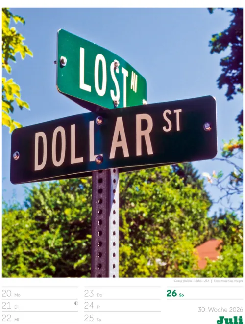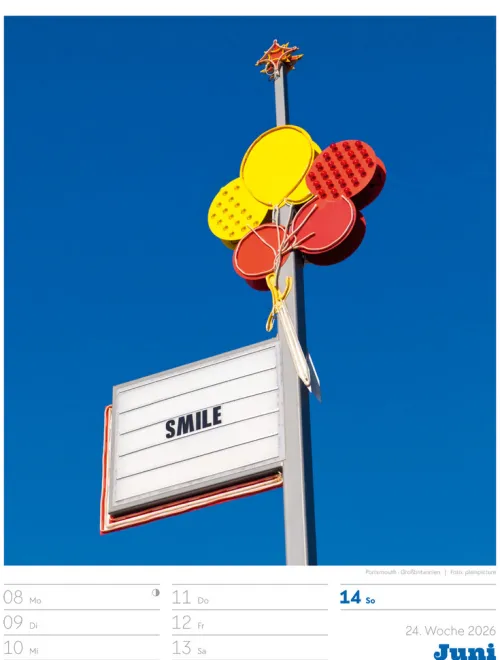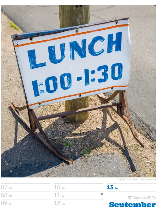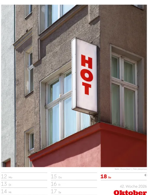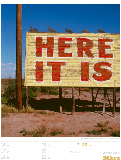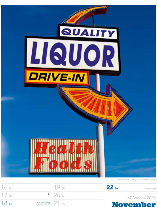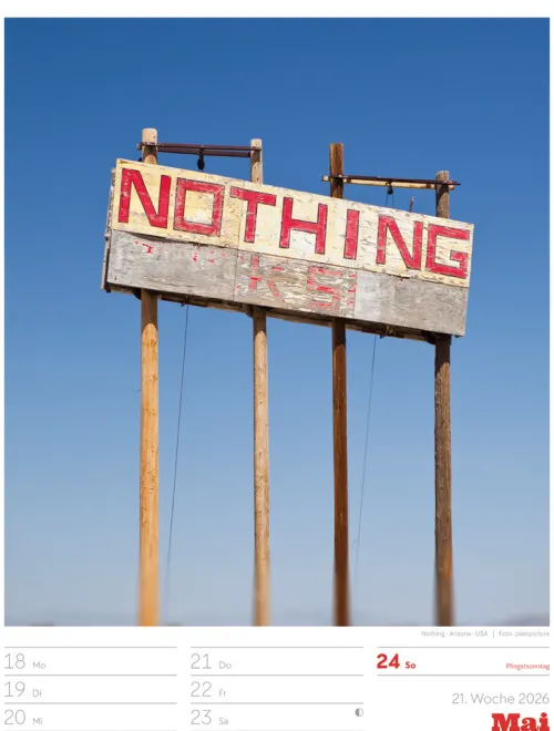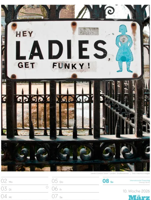 - Wochenkalender mit 53 augenzwinkernden Bildern von Schildern, gespickt mit subtilem Humor und lakonischer Ironie