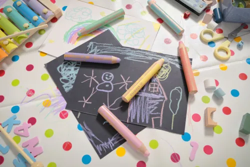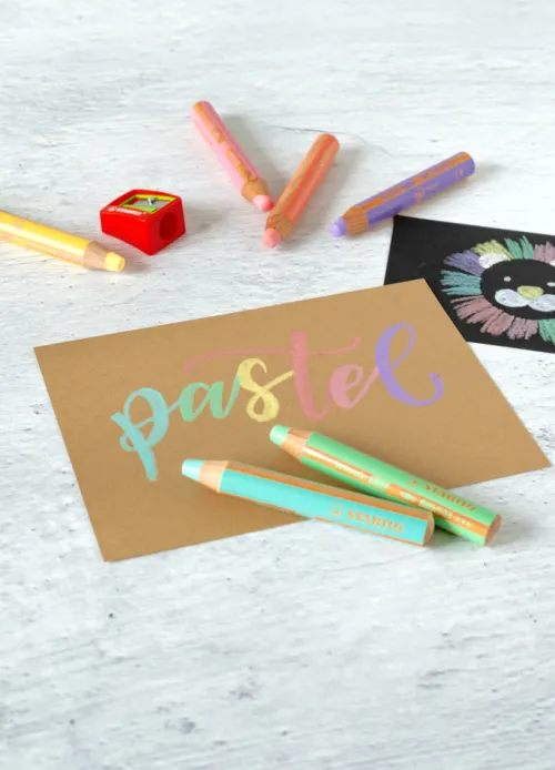 Stärke der Mine: 10 mm, Schreibfarbe der Mine: sortiert, Ausführung des Inhalts mit Packung: Kartonetui mit 6 Stiften und 1 kindersicheren Spitzer