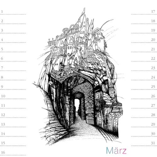 Stadler Kalender Immerwährender Kalender-Virtuelle Architektur – zum Ausmalen. Immerwährender Geburtstags- und Tischkalender