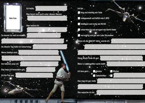 Dieses galaktische Freundebuch ist genau das Richtige für alle Jedi-Ritter. Hier können sich alle deine Freunde verewigen und dir ihre größten Geheimnisse verraten. Mit vielen coolen Eintragungen entsteht so eine einzigartige Erinnerung an die besten Freunde der Galaxie!