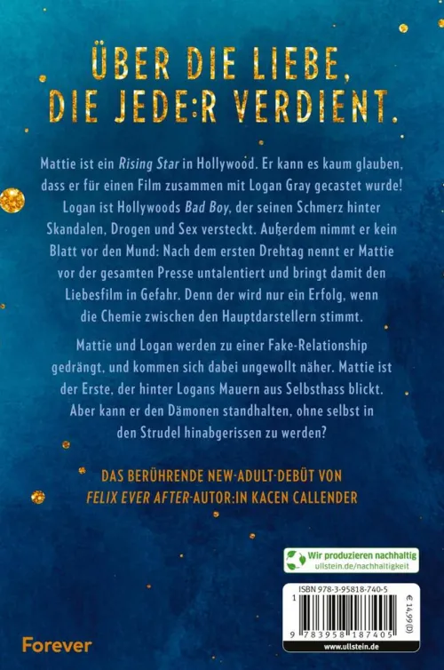 Mattie ist ein rising star in Hollywood. Er kann es kaum glauben, dass er für einen Film zusammen mit Logan Gray gecastet wurde! Logan ist Hollywoods Bad Boy, der seinen Schmerz hinter Skandalen, Drogen und Sex versteckt. Außerdem nimmt er kein Blatt vor den Mund: Nach dem ersten Drehtag nennt er Mattie vor der gesamten Presse untalentiert und bringt damit den Film in Gefahr. Denn der wird nur ein Erfolg, wenn die Chemie zwischen den Hauptdarstellern stimmt. Mattie und Logan werden zu einer Fake-Relationship gedrängt, und kommen sich dabei ungewollt näher. Mattie ist der Erste, der hinter Logans Mauern aus Selbsthass blickt. Aber kann er den Dämonen standhalten, ohne selbst in den Strudel hinabgerissen zu werden?