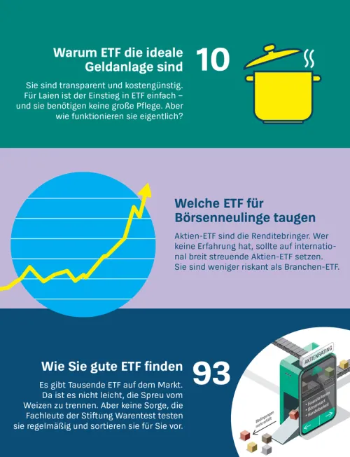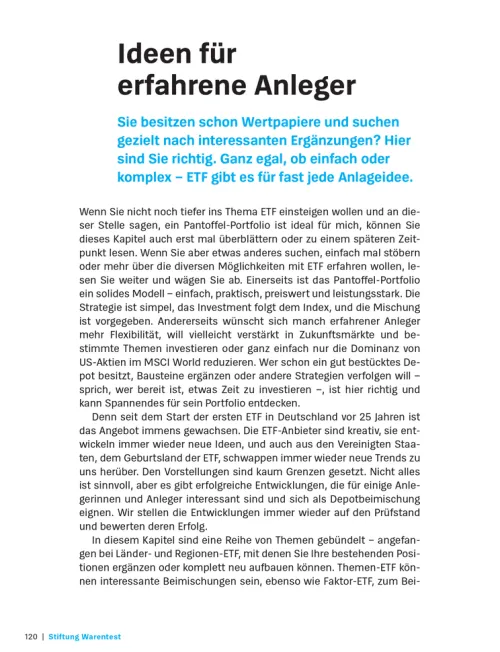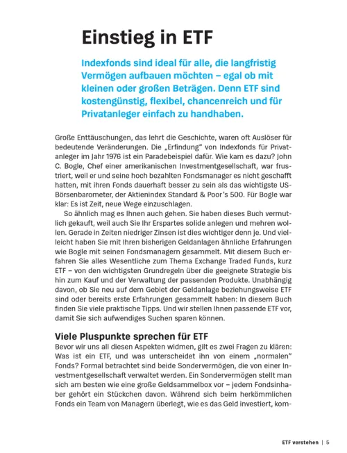 Mit ETF investieren Sie kostengünstig, flexibel und langfristig erfolgreich – und das auch mit kleinen Beträgen. Dieses Buch von Stiftung Warentest ist Ihre fundierte Anleitung für den Einstieg und die Optimierung Ihrer Geldanlage mit Indexfonds. Es richtet sich an alle, die ihr Geld renditestark und gleichzeitig risikoarm anlegen möchten – ob Einsteiger oder erfahrene Anleger.
