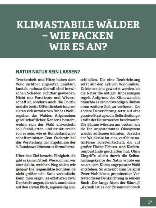 Borkenkäfer, Trockenheit, Waldbrände das sind derzeit die wirtschaftlich bedeutendsten Herausforderungen für Waldbesitzer. Uneinigkeit besteht über den einzuschlagenden Weg zum Umbau des Waldes: Soll man den Wald sich selber überlassen oder den aktiven Waldumbau forcieren? Während manche argumentieren, dass sich der Wald von selbst dem Klimawandel anpassen wird, belegt der Autor, dass ein Eingreifen für eine dauerhafte wirtschaftliche Nutzung unserer Wälder unerlässlich ist, und zeigt auf, mit welchen Schritten dieser Umbau einhergeht.