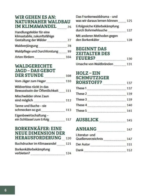 Dieses Buch thematisiert, welche Zukunft unsere Baumarten nach dem derzeitigen Wissensstand haben und was jetzt zu tun ist, um den Wald klimaresilienter zu gestalten. Neben waldbaulichen Fragen geht der Autor auch auf eine waldgerechte Jagd ein, ohne diese der notwendige Waldumbau nicht gelingen kann. Das Buch zeigt auf, welchen Einfluss der einzelne Waldbesitzer dabei nehmen kann.