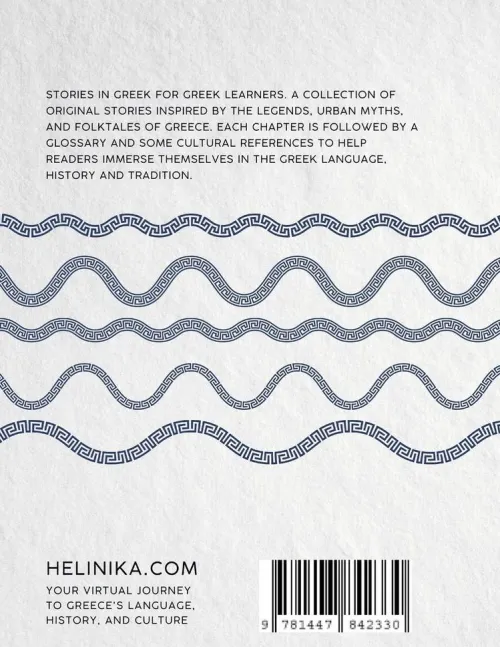 Stories in Greek for Greek learners. A collection of original stories inspired by the legends, urban myths and folktales of Greece. Each chapter is followed by a glossary and some useful information to help readers immerse themselves in the Greek language, history and tradition.