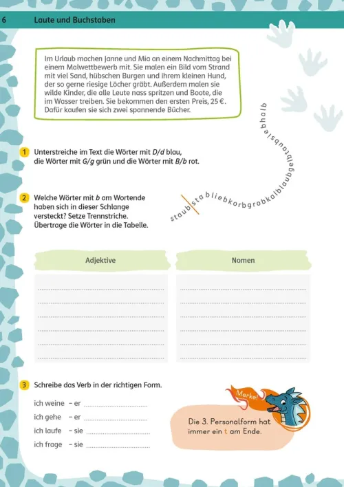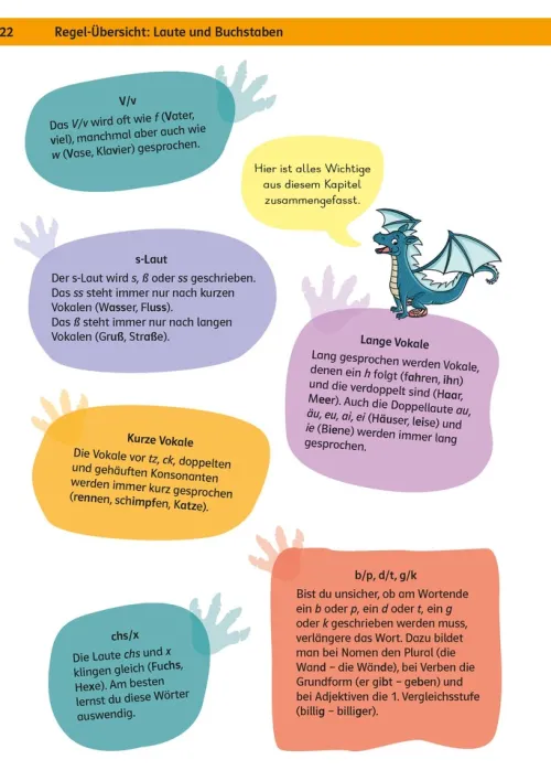 - Mehr als 300 Übungen, Merkkästen und Zusammenfassungen zu allen Bereichen des Faches Deutsch: Rechtschreibung, Sprache untersuchen, Lesen und Leseverständnis, Präsentieren und Zuhören, Texte schreiben