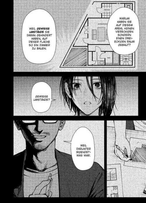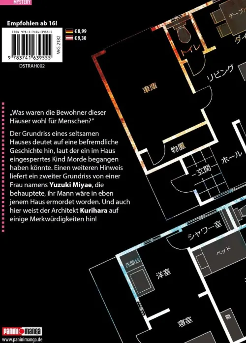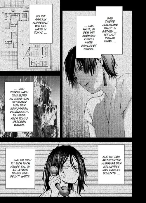 Begleite in diesem Manga einen jungen Autor bei seinen Nachforschungen zu einem mysteriöses Haus, das mehr verbirgt, als es auf den ersten Blick scheint. Mit jedem Kapitel enthüllt „The Strange House“ eine Schicht nach der anderen seiner dunklen Geheimnisse, die dich bis zur letzten Seite fesseln wird. Dieser Manga ist nicht nur eine Geschichte – es ist eine Erfahrung, die dich in eine Welt voller Rätsel und scheinbar unerklärlicher Phänomene entführt. Mach dich bereit, in ein Abenteuer einzutauchen, das dich nicht mehr loslassen wird. Das erwartet dich in Band 2:“Was waren die Bewohner dieser Häuser wohl für Menschen?“ Der Grundriss eines seltsamen Hauses deutet auf eine befremdliche Geschichte hin, laut der ein im Haus eingesperrtes Kind Morde begangen haben könnte. Einen weiteren Hinweis liefert ein zweiter Grundriss von einer Frau namens Yuzuki Miyae, die behauptete, ihr Mann wäre in eben jenem Haus ermordet worden. Und auch hier weist der Architekt Kurihara auf einige Merkwürdigkeiten hin! Für Fans von Horror-, Mystery- und Thriller-Manga!