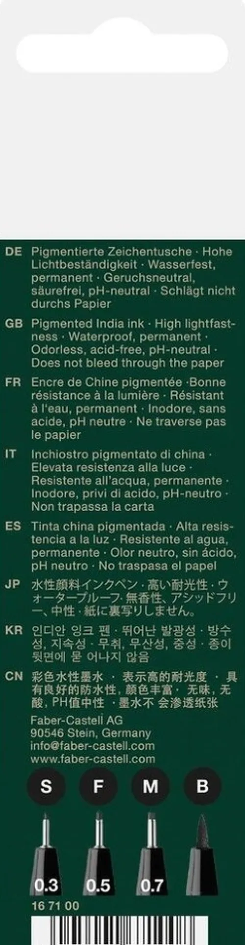 Tuschezeichnungen haben eine sehr lange künstlerische Tradition. Die Ausdruckskraft und Alterungsbeständigkeit, sowie die Kombinationsmöglichkeiten mit vielen anderen Maltechniken, machen das Medium von jeher für Künstler und Grafiker interessant. Faber-Castell hat all die Vorteile der Künstlertuschen in einem modernen, unkomplizierten Einwegstift, dem PITT artist pen, vereint. Die pigmentierte und hoch lichtbeständige Zeichentusche eignet sich ideal zum Anfertigen von Skizzen, Zeichnungen, Layouts, Modezeichnungen und Illustrationen.