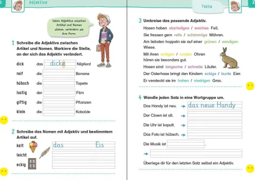 Dieses Übungsheft zum Thema Grammatik ist sowohl für das eigenverantwortliche Üben am Nachmittag geeignet als auch für die Freiarbeit im Unterricht einsetzbar. Es beinhaltet einen kompletten Trainingsplan für den Stoff der 2. Klasse und legt dabei den Fokus auf die Bestimmung von Wort- und Satzarten sowie das Entdecken von Wortfeldern und Wortfamilien. Wie beim Sport beginnt alles mit dem Aufwärmen, um danach mit der entsprechenden Taktik ins Ausdauertraining zu gehen. Anschließend gibt es – für die ganz Eifrigen – eine Nachspielzeit mit kniffligen Zusatzaufgaben. Am Ende des Heftes bereitet dich ein spezielles Intensivtraining auf den Wechsel an die weiterführende Schule vor. Die beiliegenden Lernerfolgskarten können mit Stickern beklebt werden, sobald eine Übungsseite absolviert wurde. Das dokumentiert den Lernfortschritt und motiviert – ganz wie im Sport – für weitere erfolgreiche Trainingseinheiten.