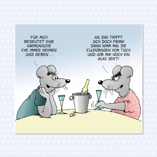 Das gemeinsame Leben könnte kaum besser beginnen als mit einem herzhaften Lachen. Gekonnt witzig fängt Uli Stein all die Momente des Ehelebens in seinen Cartoons ein, die Liebende täglich herausfordern und amüsieren. Seine lustigen Tipps und Lebensweisheiten stimmen das Brautpaar direkt darauf ein, dass in einer Ehe eines niemals fehlen darf: eine große Portion Humor!