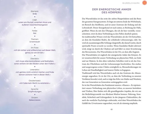 Unsere frühesten Erfahrungen hinterlassen Spuren – in Körper, Geist und Seele. Ebenso in unserem feinstofflichen Energiesystem. In diesem einzigartigen Chakrabuch verschmelzen östliche Weisheit, westliche Psychologie und aktuelle Traumaforschung zu einem achtsamen Wegbegleiter, mit dem sich diese Prägungen aufspüren und heilsam wandeln lassen.