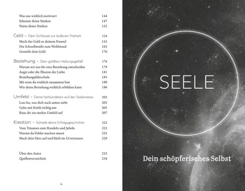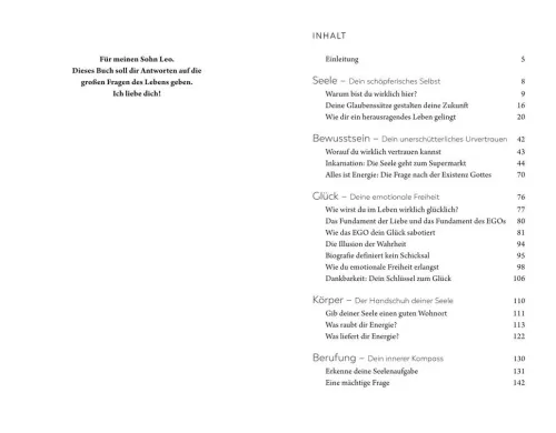 Dieses Buch ist eine Schatzkiste voller Praxis-Tools zu verschiedenen Lebensbereichen: Seele, Beziehung, Berufung, Geld, Glück, Umfeld, Spiritualität, Bewusstsein und Kreation. Inklusive Online-Kurs und zahlreichen Tests, Checklisten & Meditationen.