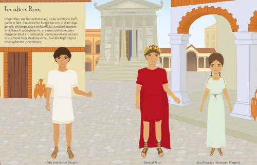 Begib dich auf eine modische Welt- und Zeitreise! Von der indischen Braut im festlichen Sari bis zur englischen Dame aus dem 19. Jahrhundert – mit über 450 farbenfrohen Stickern kannst du die Figuren für jeden Anlass passend ausstatten.