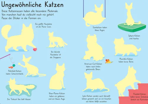 * Detailreiche Sticker zeigen eine große Vielfalt an Katzenrassen sowie Spielzeug und Zubehör