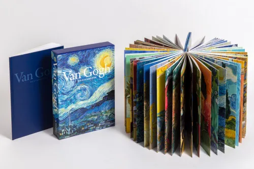Dieses wunderschöne Set enthält atemberaubende Werke von Vincent Van Gogh: Ein 16 Meter langer Gemälde-Leporello mit Leinenbindung und Booklet im Schmuckschuber begeistert alle Kunstfreunde.