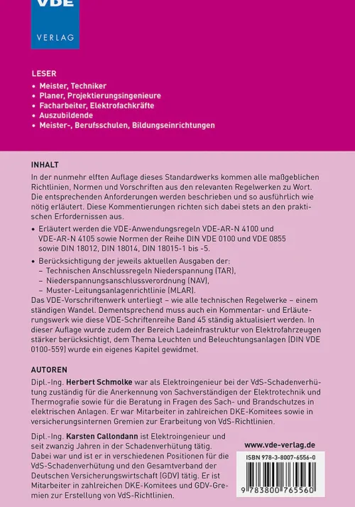 In der elften Auflage dieses Standardwerks kommen wieder alle maßgeblichen Normen, VDE-Anwendungsregeln, Richtlinien und Vorschriften zu Wort. Sie werden dort kommentiert, wo Erklärungsbedarf besteht. Diese Kommentierungen richten sich dabei stets an den praktischen Erfordernissen aus. – Erläutert werden Normen der Reihe DIN VDE 0100 und VDE 0855 sowie DIN 18012, DIN 18014, DIN 18015-1 bis -5. – Berücksichtigung der jeweils aktuellen Ausgaben der: – Technischen Anschlussregeln Niederspannung (TAR), – Niederspannungsanschlussverordnung (NAV), – Muster-Leitungsanlagen-Richtlinie (MLAR). Elektrofachkräfte wissen, dass VDE-Normen und überhaupt technische Regelwerke ständig angepasst werden müssen, um den technischen Fortschritt und unter Umständen auch entsprechende behördliche sowie gesetzliche Regelungen widerspiegeln zu können. Allein in den Jahren 2023 und 2024 wurden mehr als 300 VDE-Normen, VDE-Vornormen und Berichtigungen von VDE-Normen herausgegeben. Dementsprechend muss auch ein Kommentar- und Erläuterungswerk wie die VDE-Schriftenreihe 45 ständig aktualisiert werden.