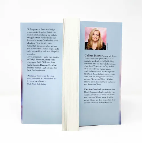Die Jungautorin Lowen Ashleigh bekommt ein Angebot, das sie unmöglich ablehnen kann: Sie soll die gefeierten Psychothriller von Starautorin Verity Crawford zu Ende schreiben. Diese ist seit einem Autounfall, der unmittelbar auf den Tod ihrer beiden Töchter folgte, nicht mehr ansprechbar und ein dauerhafter Pflegefall.